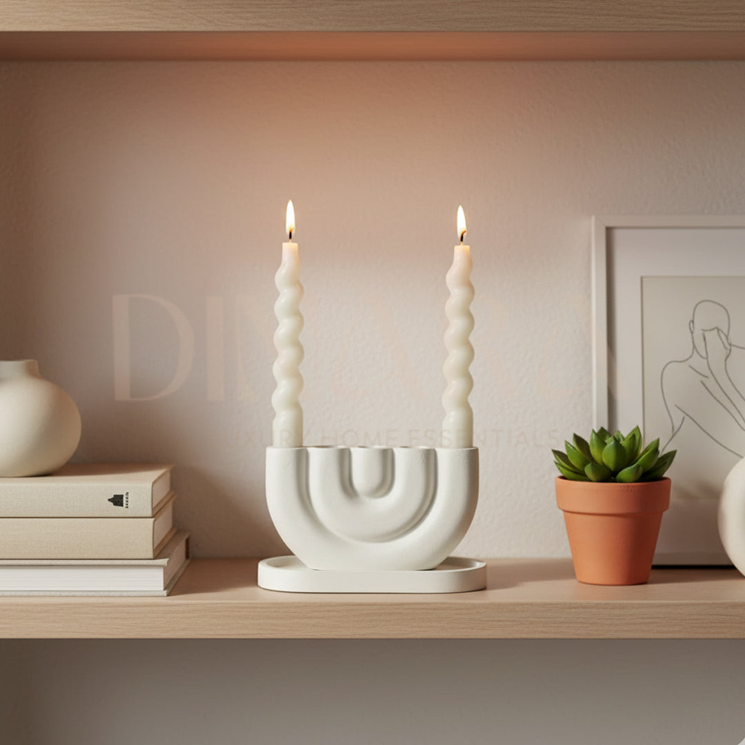 Create a cozy and inviting ambiance with our Autumn deal! The set includes a 6.8 inch sol candle holder, 5 spiral candles (7.2 inches), and a 7 inch oval tray. Perfect for adding warmth and style to any room.