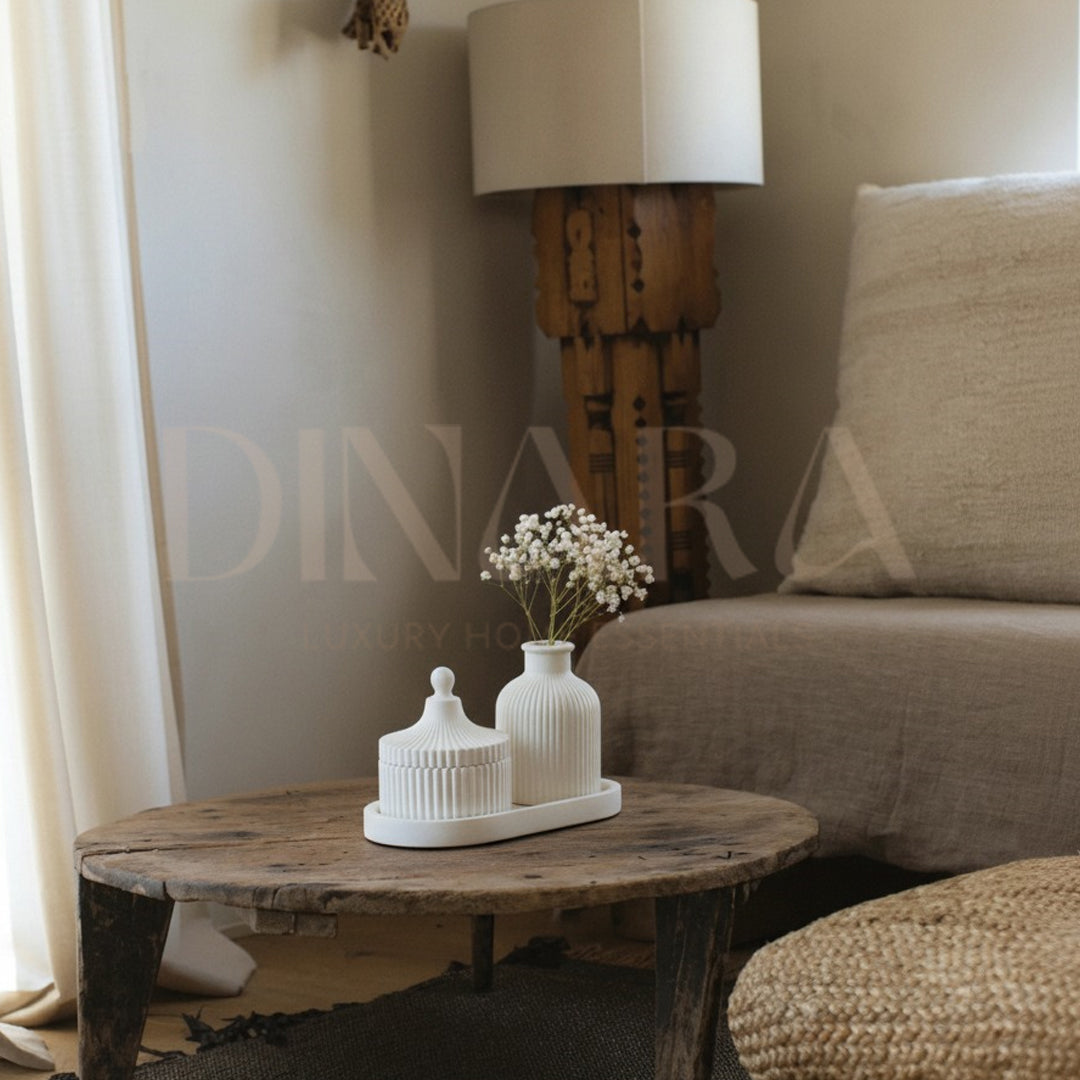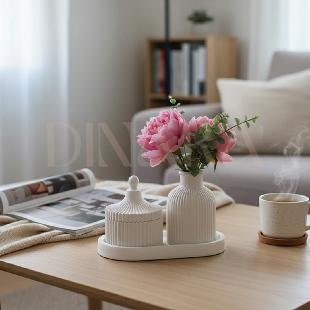 Beautify your home with our trio set. This set of 3 decorative pieces includes a Nordic ceramic vase, a jewelry container, and an oval trinket tray – making it perfect for any style. Bring warmth and charm to any room and enjoy a luxurious home décor experience!