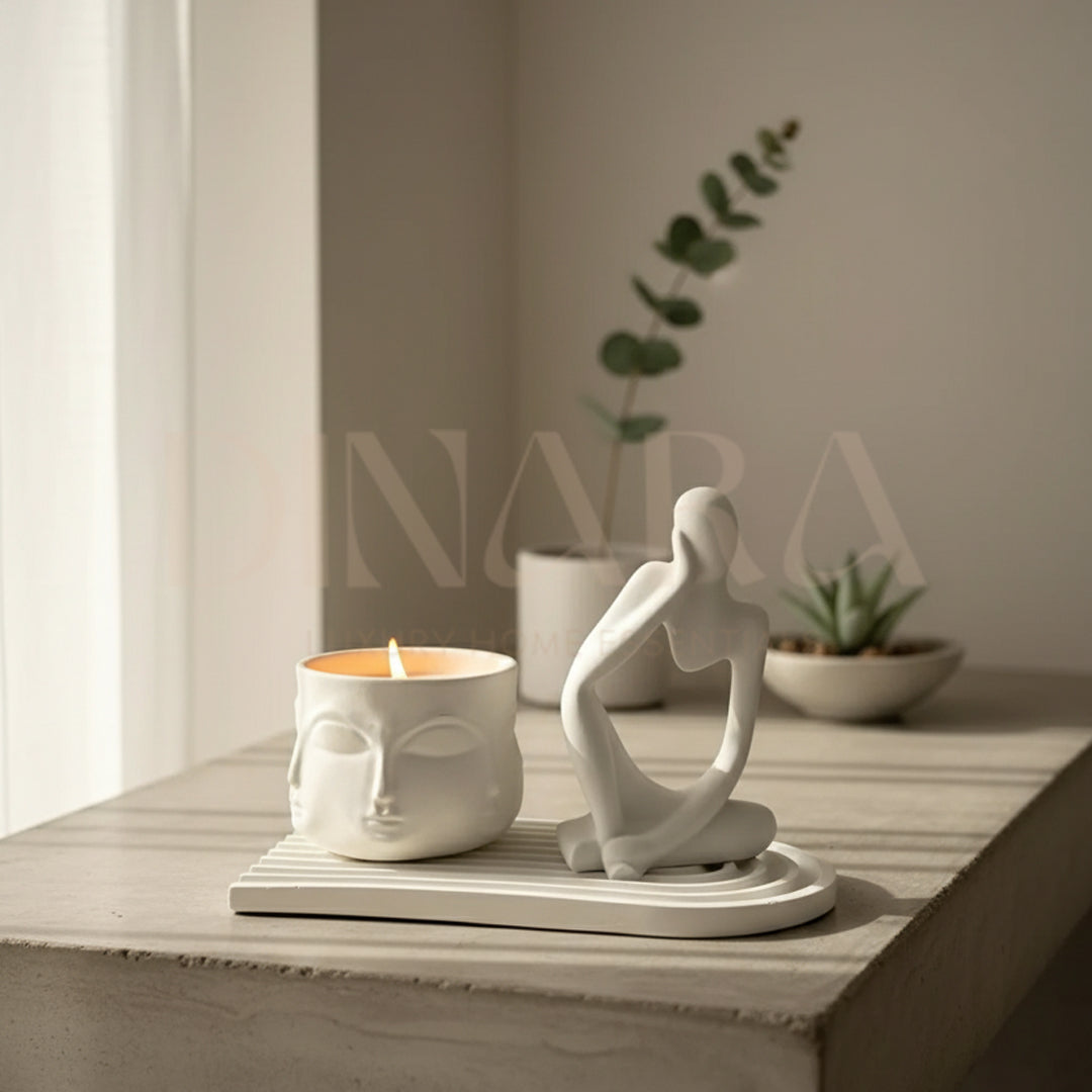 Transform your space into a tranquil haven with Fawn. This set includes a stylish silas candle holder, a versatile small arch tray, and an elegant abstract statue. Elevate your decor and create a peaceful ambiance with Fawn.