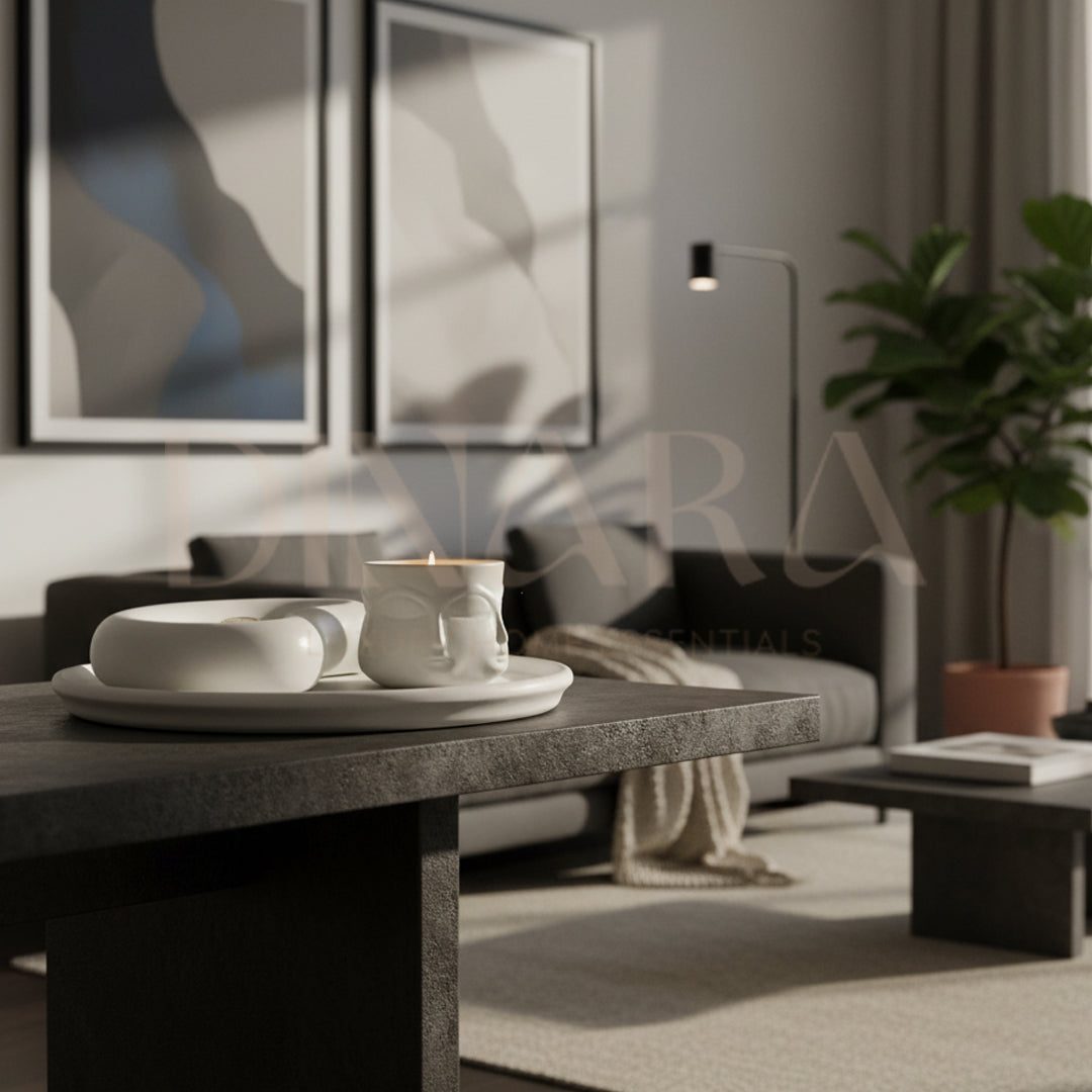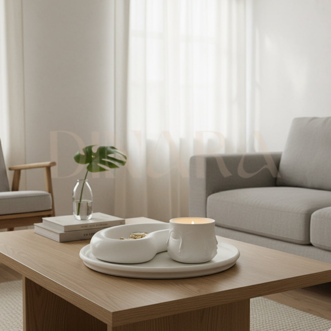 Enhance your decor with the Snowfield deal, which features our sleek and trendy Luna tray, a large ceramic tray, and the elegant Silas candle. Make a statement with just one purchase!