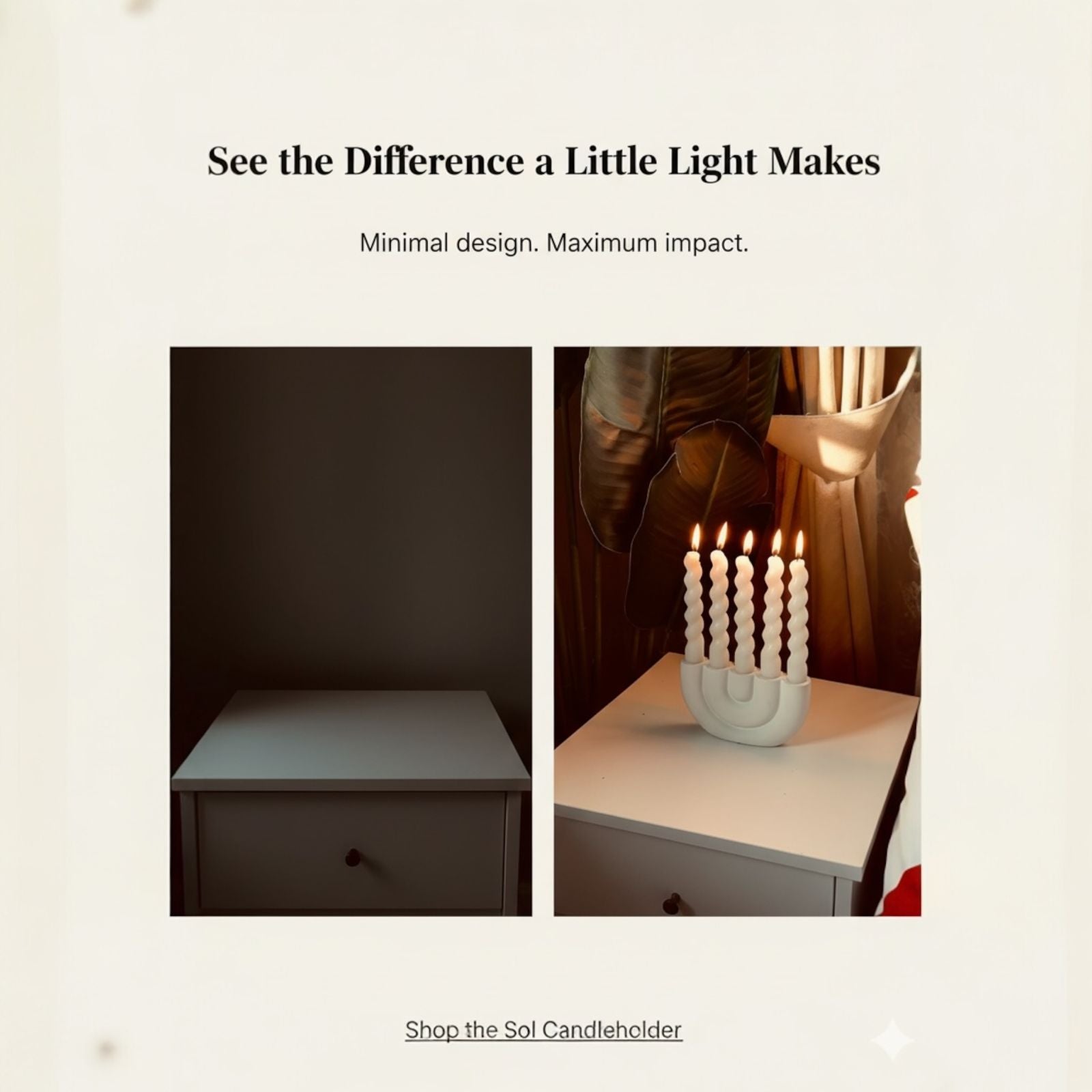 Inspired by the tranquility of sunset light and the gentle rhythm of candle flames, Sol reflects the harmony between form and feeling. Every curve is hand-finished with care, ensuring no two pieces are ever exactly alike — each one quietly unique, just like the home it belongs to.